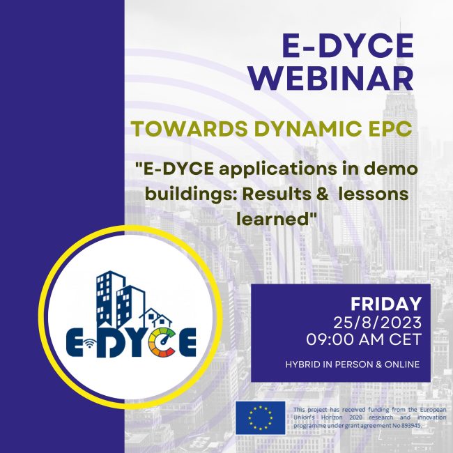 3rd E-DYCE Webinar: Towards the Dynamic EPCs – EDYCE applications in demo buildings: lessons learned, Torino August 26th, 2023